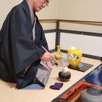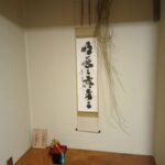 10時過ぎ、香煎を頂き、腰掛待合へ。蹲から席入り、炭手前、懐石(弁当)、主菓子を頂き、中立ち、濃茶点前、薄茶点前